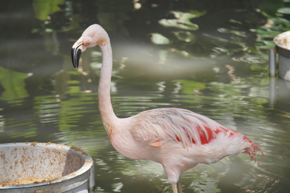 Feeding for white and red colour crane bird photo taken at Singapore Zoo