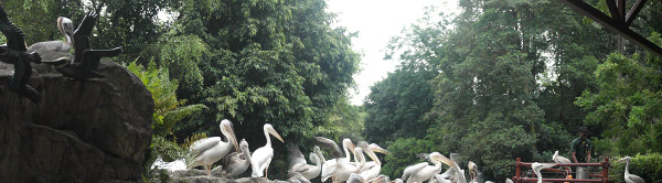 White colour Crane bird swimming towards front... photo taken at Singapore Zoo