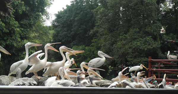 Group of red colour Crane birds standing, photo taken at Singapore Zoo.