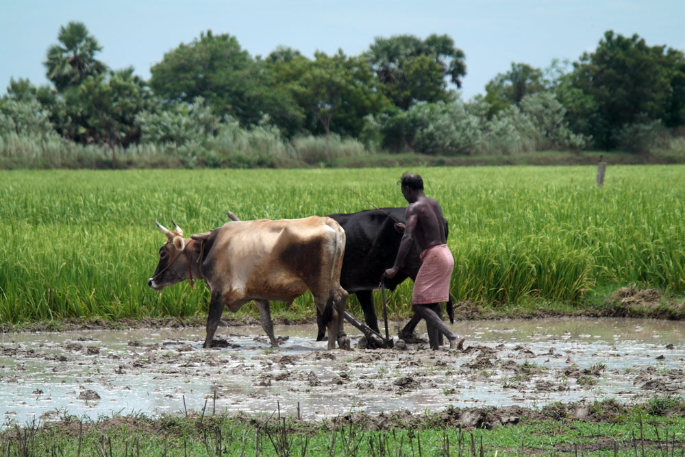 Farmer on paddy / agriculture land, photo taken at Mannargudi, Tamil Nadu