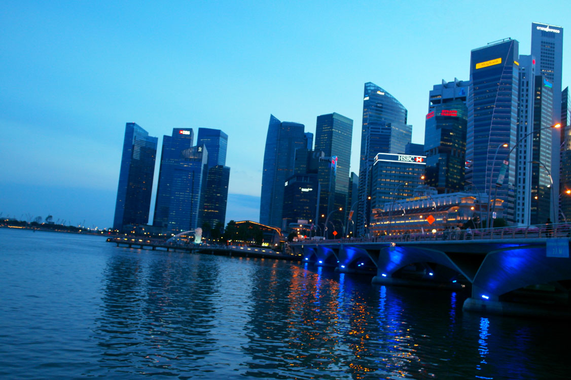 Raffles Place Buildings at evening time, photo taken at Singapore