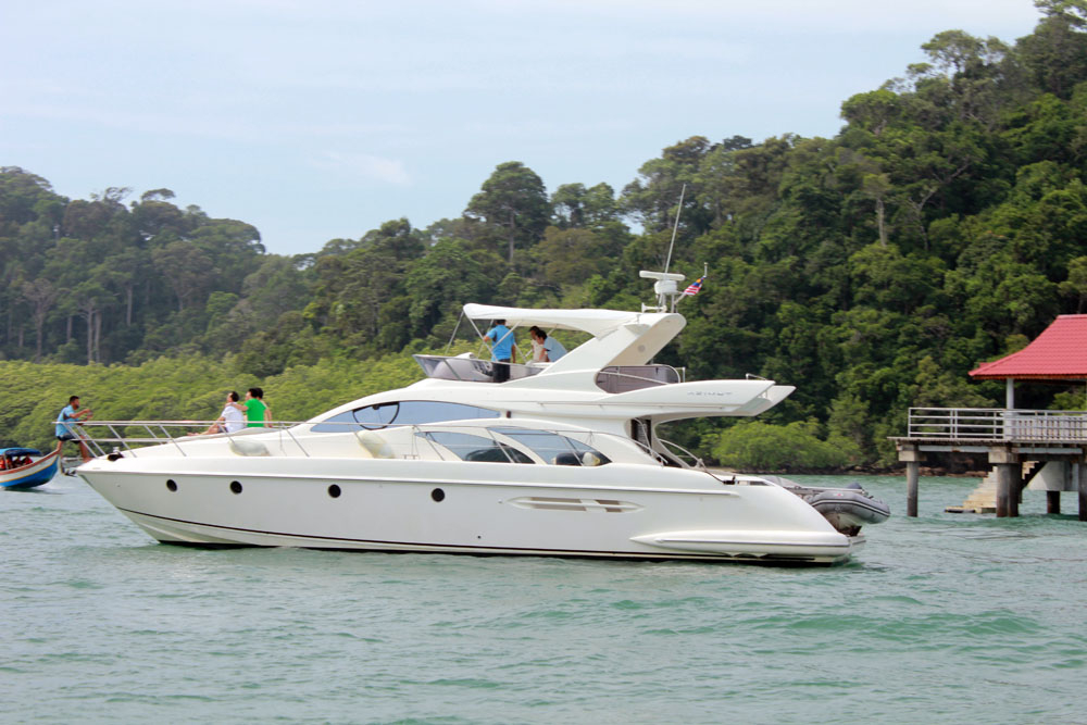 Stylish white colour ferry at Lankawi island sea water, photo taken at Malaysia