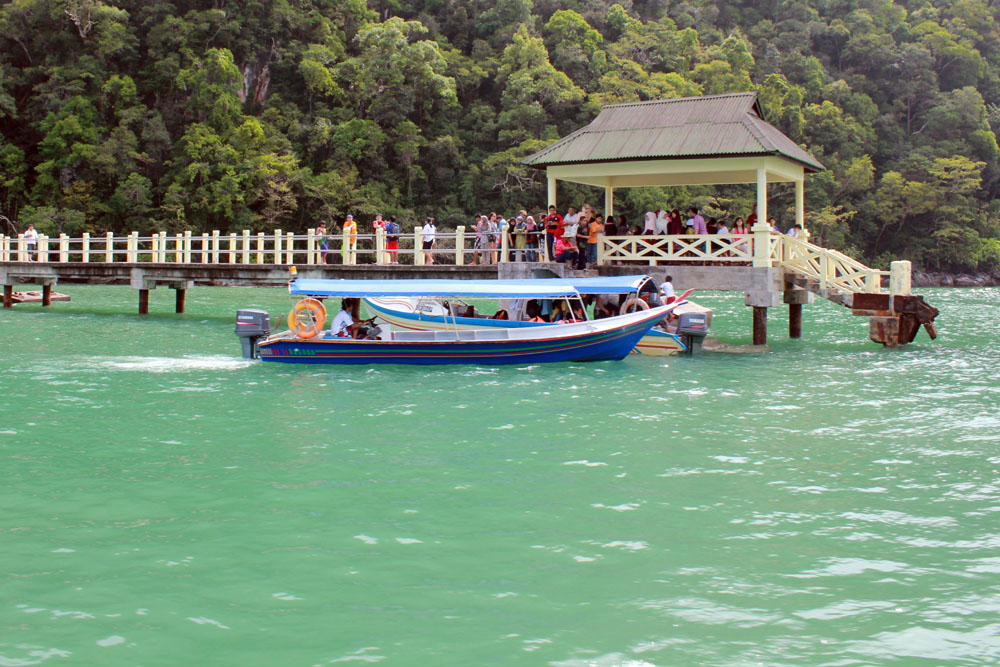 Clean sea water and blue colour ferry at Lankawi island, photo taken at Malaysia