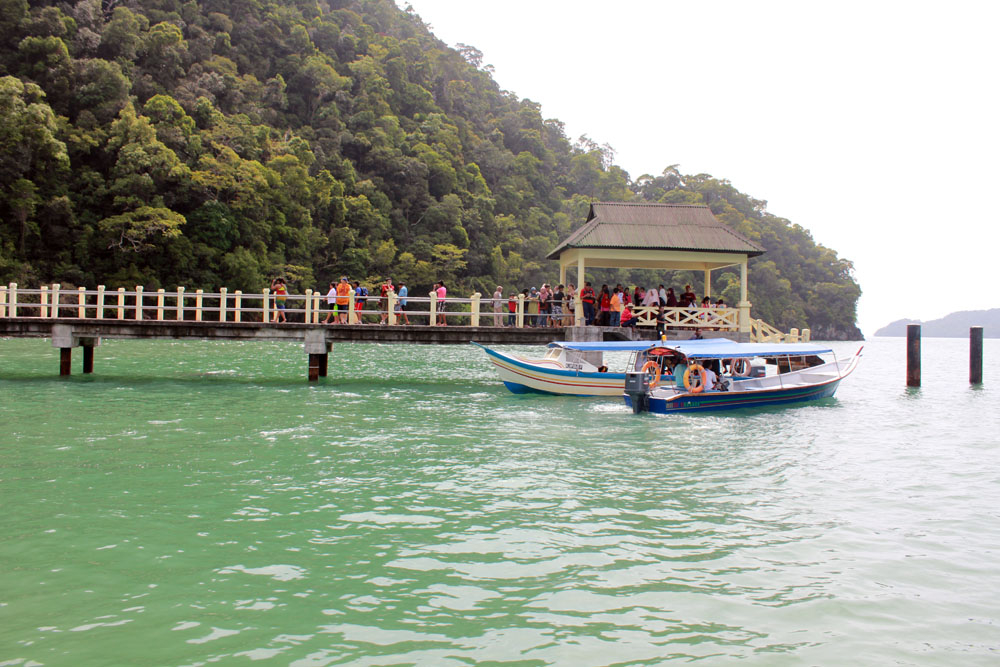 Blue colour ferry at sea water (Lankawi island), photo taken at Malaysia